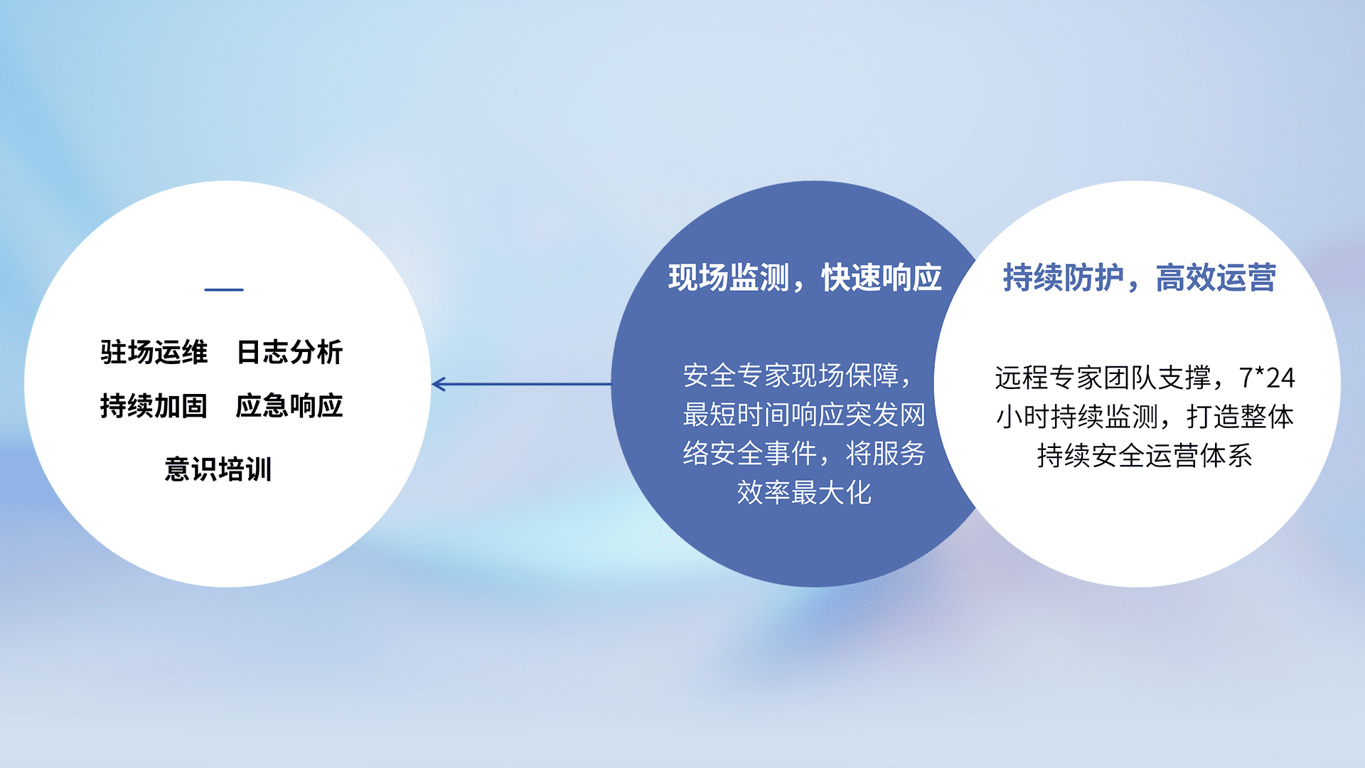 7X24小时持续监测安全事件,保持安全策略有效性,降低资产脆弱性风险,,精准拦截黑客攻击,,,,减少被黑客利用的机会,,,第一时间遏制,,降低损失。。