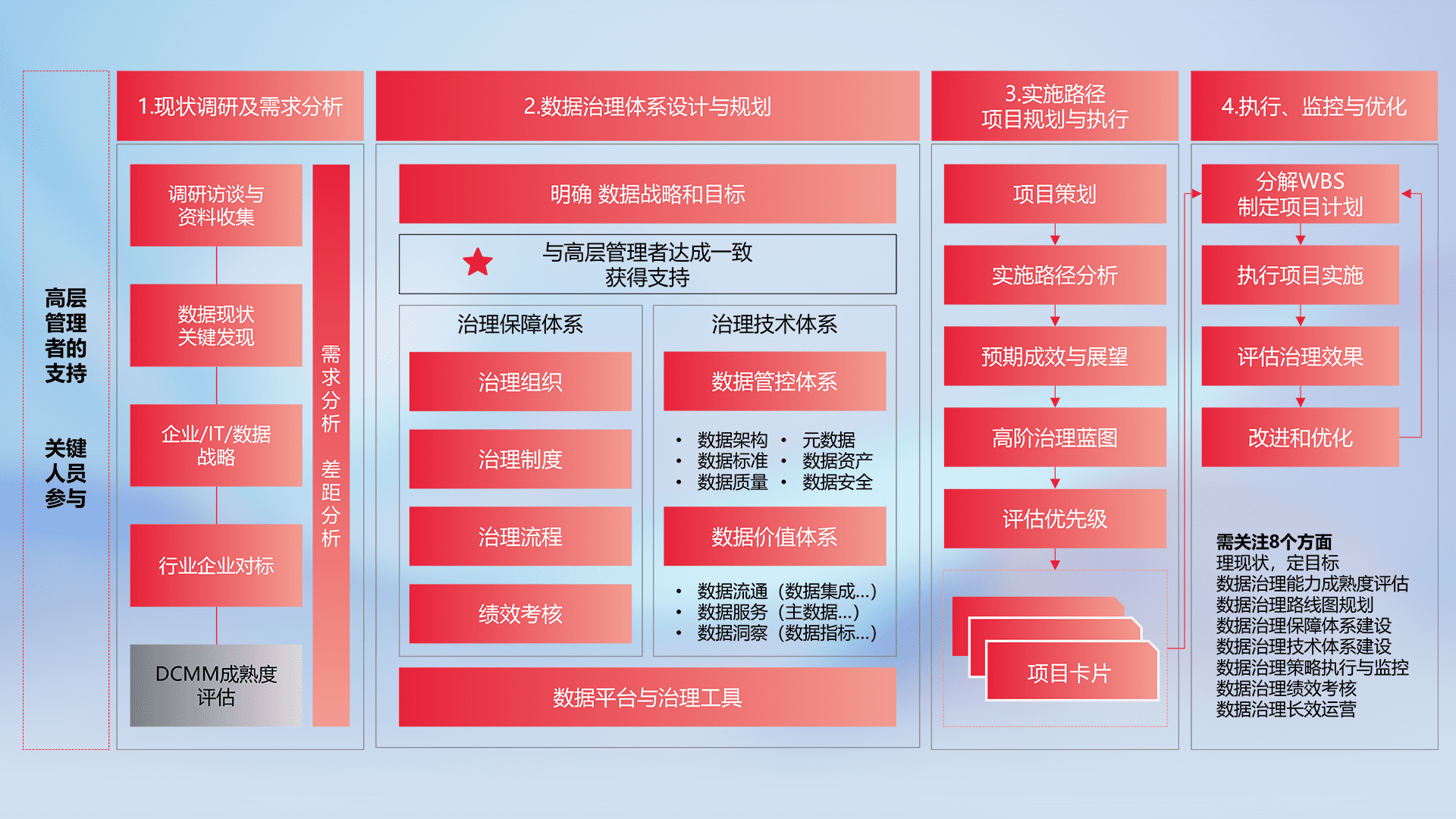 制定并执行统一的数据标准,,,规范数据定义和格式,,,,消除冗余和不一致性,,,,实现跨部门和跨系统的数据一致性,,为企业提供标准化的数据基础。。。。